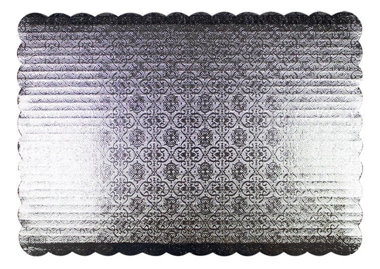 Imagina tus hermosos pasteles o cupcakes luciendo espectaculares sobre esta base. Ya sea para una celebración especial, una fiesta de cumpleaños o simplemente para sorprender a tus seres queridos, nuestra base rectangular festoneada plateada es el complemento perfecto. ¡Eleva la presentación de tus postres y deja una impresión inolvidable!