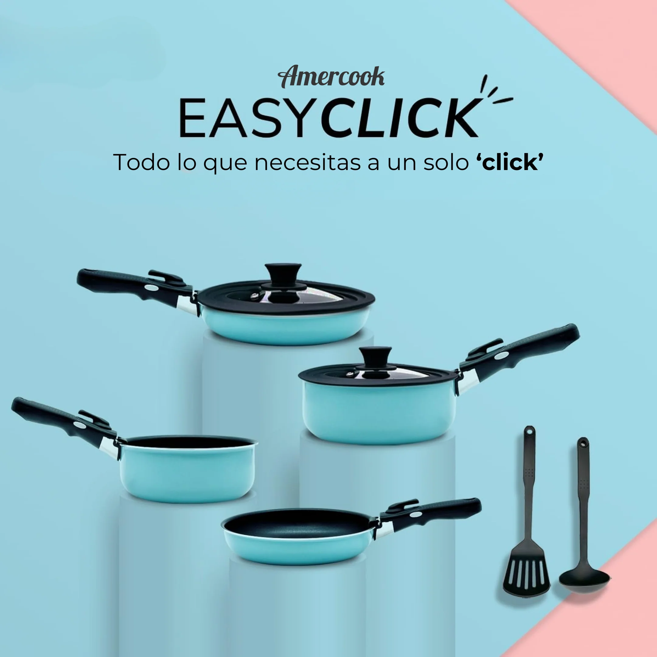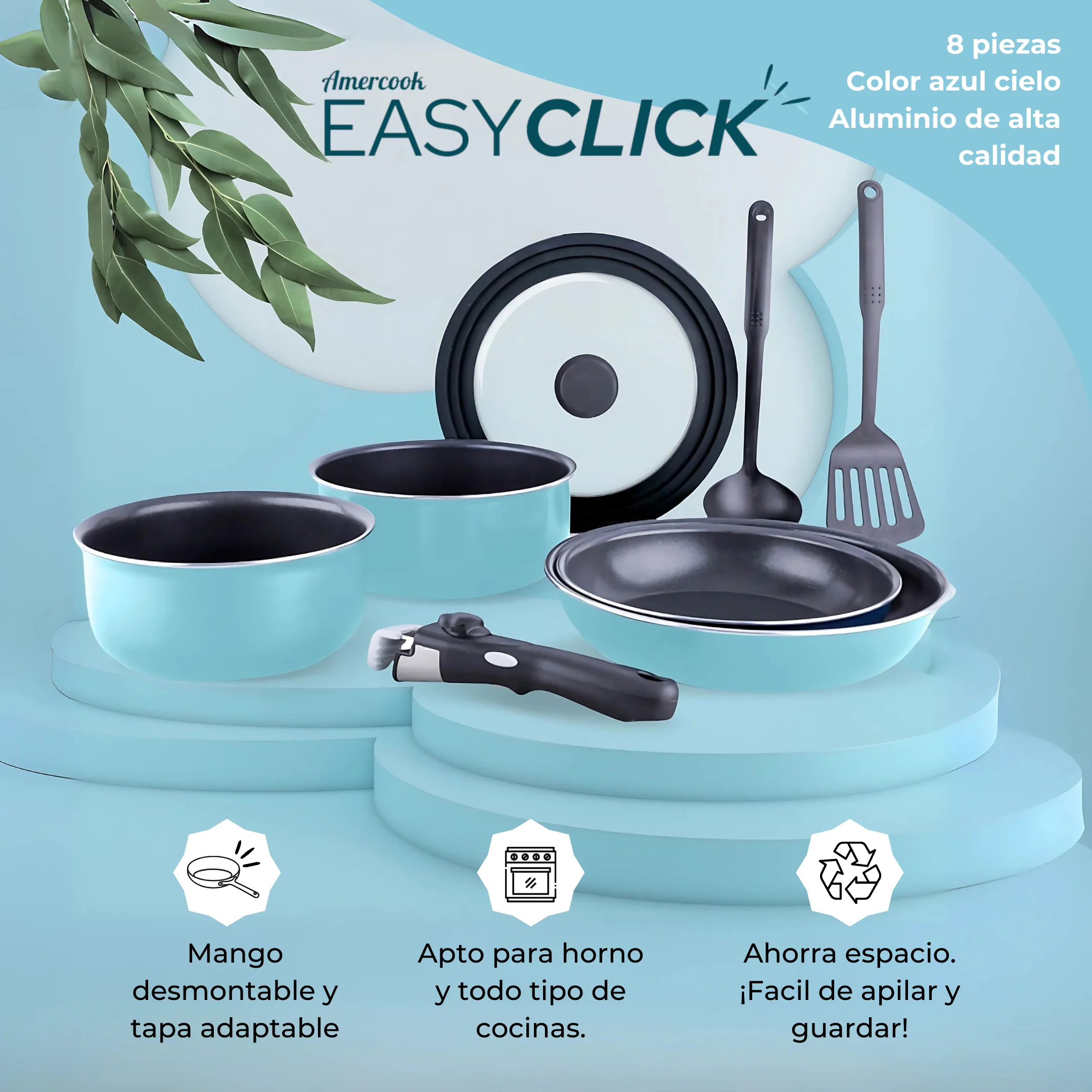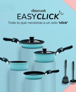 Renueva tu cocina y dale un giro colorido con la **Batería de cocina de aluminio EasyClick de 8 piezas y mango extraíble de color azul cielo**. Diseñada para quienes valoran la funcionalidad y el estilo, esta batería no solo realza tu espacio culinario, sino que también contribuye al cuidado del medio ambiente. Fabricada en aluminio de alta calidad, garantiza una cocción uniforme y eficiente, lo que te permitirá preparar tus platillos favoritos sin complicaciones.