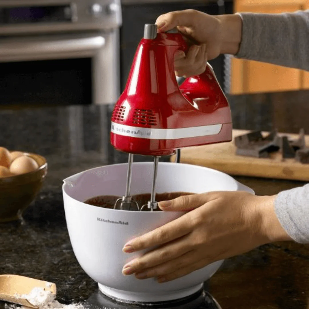 ¿Qué incluye? La batidora, dos batidores turbo, dos ganchos amasadores, un batidor de 16 varillas, una varilla de mezclado y una práctica bolsa de almacenamiento de algodón. ¡Todo lo que necesitas para convertirte en un maestro repostero! No esperes más, añade la Batidora de Mano Imperial a tu cocina y empieza a crear magia. ¡1 AÑO de garantía oficial KitchenAid!