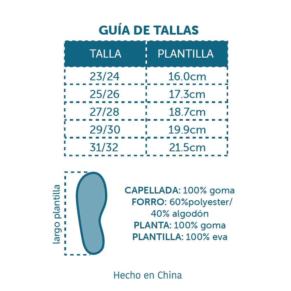 ¡Descubre la magia de la lluvia con nuestras Botas de Agua Infantil Aqua! Diseñadas especialmente para pequeños aventureros, estas botas no solo son una defensa contra el agua, ¡sino una invitación a explorar y jugar! Hechas con materiales ecológicos y seguros, nuestras botas ofrecen la tranquilidad que los padres buscan y el estilo que los niños adoran.