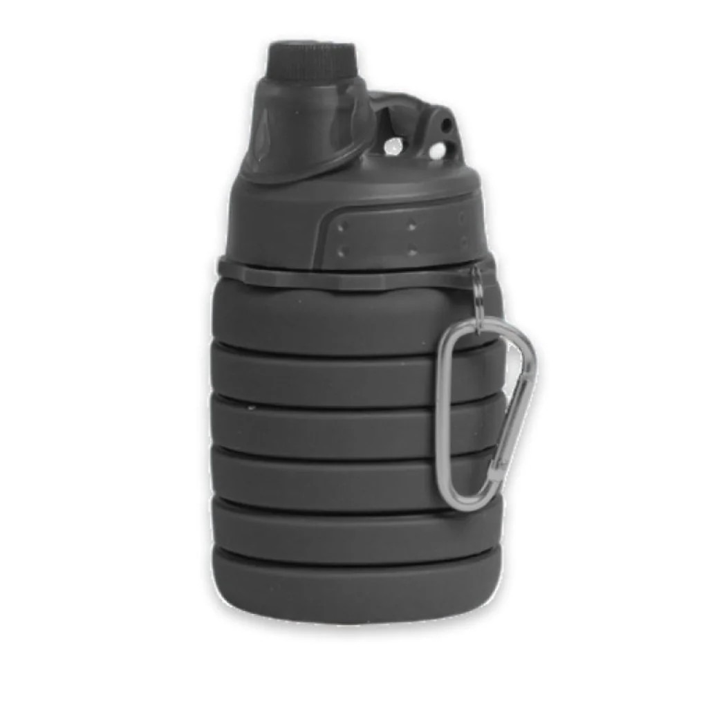 Haz de la **Botella Plegable Negra 500ML** tu compañera de confianza y disfruta de un estilo de vida **sostenible** y **saludable**. ¡Llévala a todos tus destinos y mantente hidratado de manera práctica!