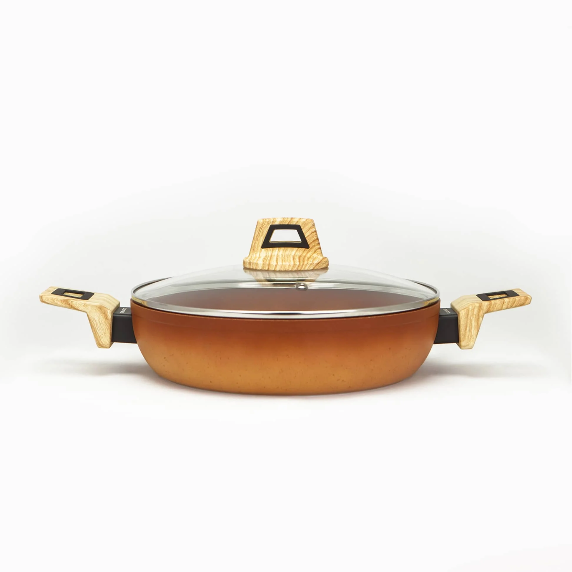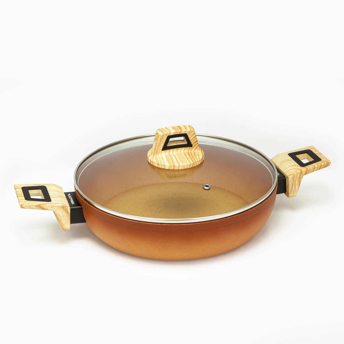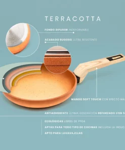 La cacerola baja con tapa Terracotta es la elección perfecta para quienes buscan combinar tradición y modernidad en la cocina. Inspirada en las clásicas ollas de barro, su diseño sofisticado se adapta a cualquier estilo. Los mangos «soft touch» con efecto madera brindan un agarre cómodo y seguro, haciéndola ideal para cualquier ocasión.