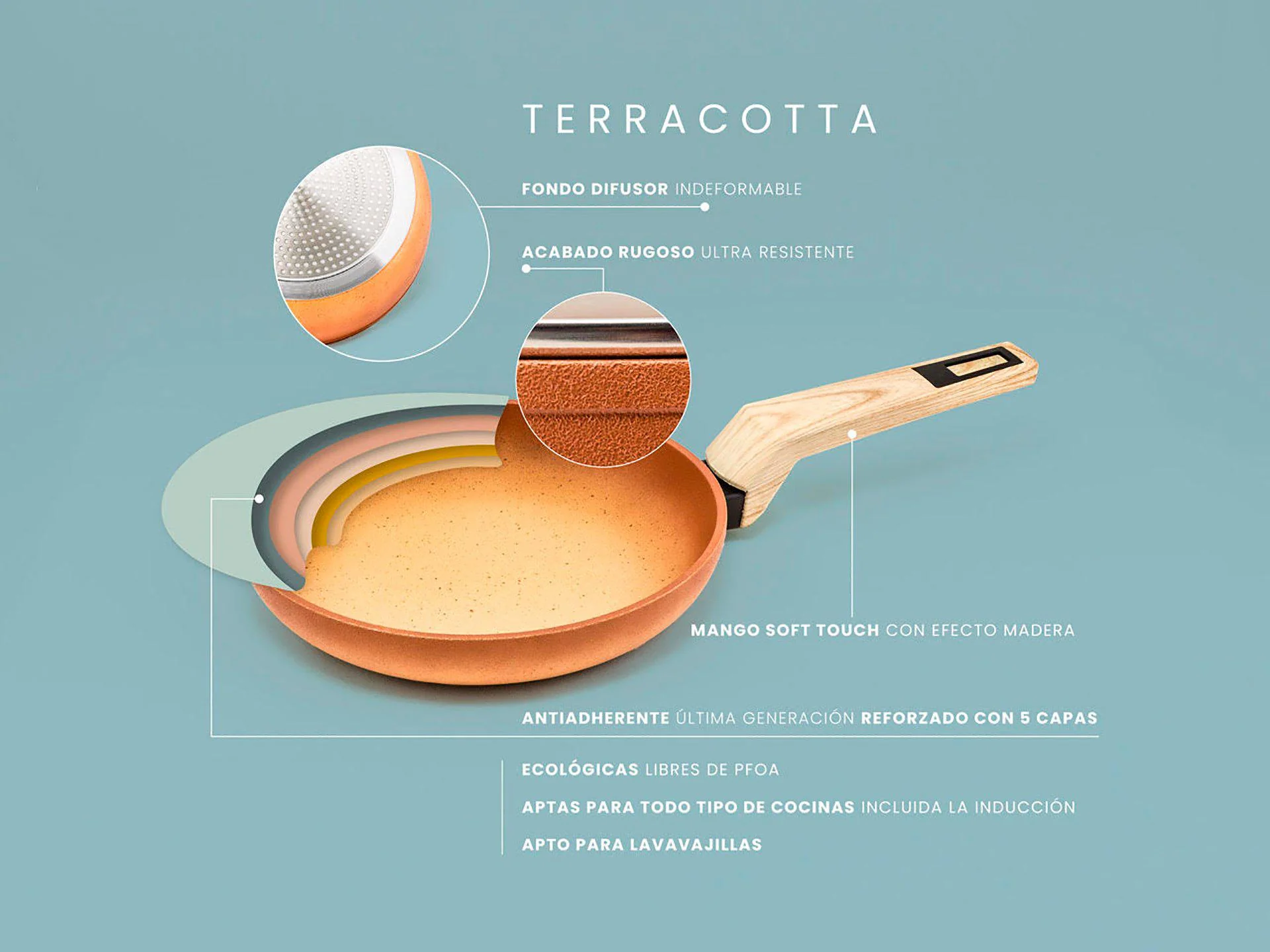 Una de sus características más destacadas es que es ecológica y libre de PFOA, lo que significa que puedes cocinar sin preocuparte por la seguridad de tus alimentos ni del medio ambiente. Además, es apta para todo tipo de cocinas, incluyendo inducción, y compatible con el lavavajillas para una limpieza sin esfuerzo.