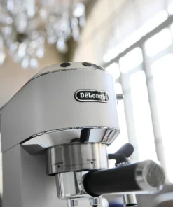 Esta cafetera no solo es una exquisitez para la vista, con su cuerpo de acero inoxidable brillante y un hermoso acabado blanco que embellece cualquier cocina, sino que también es un aliado en el cuidado del medio ambiente. Diseñada para los amantes del café que buscan un producto seguro y ecológico, la Dedica utiliza un sistema eficiente que minimiza el consumo energético sin comprometer el sabor.