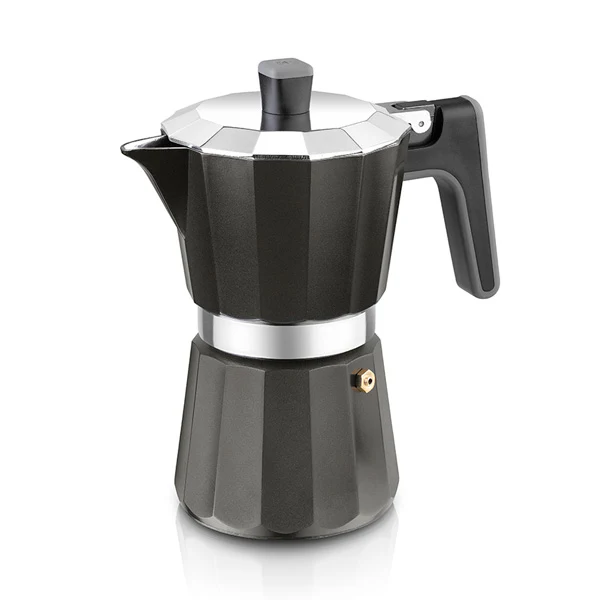 La Cafetera Perfecta Black no solo es higiénica y fácil de limpiar, sino que también cuenta con un asa ergonómica de baquelita termoresistente, que garantiza un agarre cómodo y seguro. Con una capacidad que va de 6 a 12 tazas, es perfecta para disfrutar en solitario o compartir momentos especiales.
