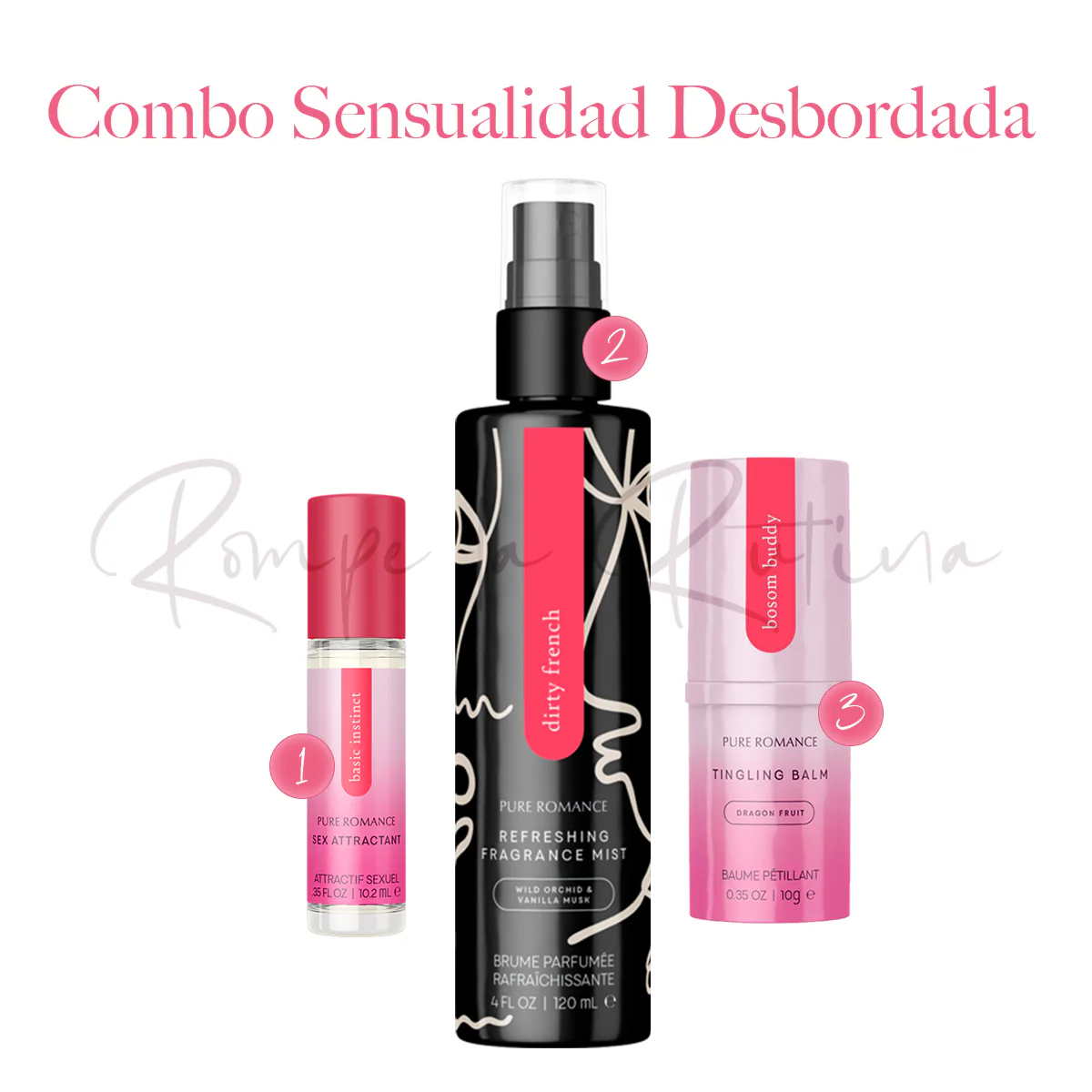 ¡Descubre el Combo Sensualidad Desbordada! Este irresistible set incluye tres productos diseñados para realzar tu sensualidad y dejar una impresión inolvidable.