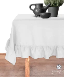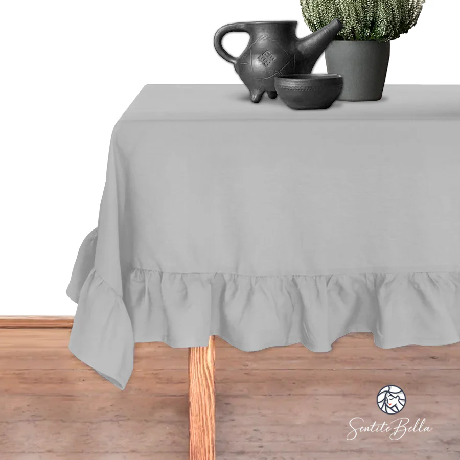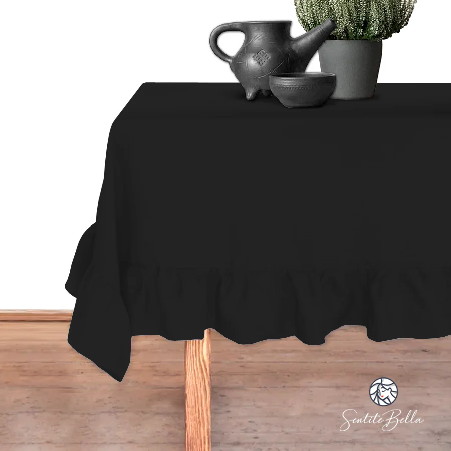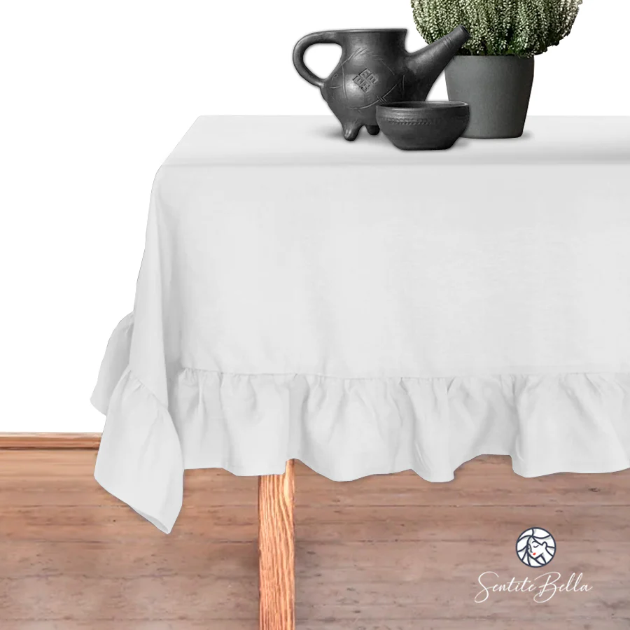 Mantel con Volado Rectangular Coquette Elegante Tela Panama