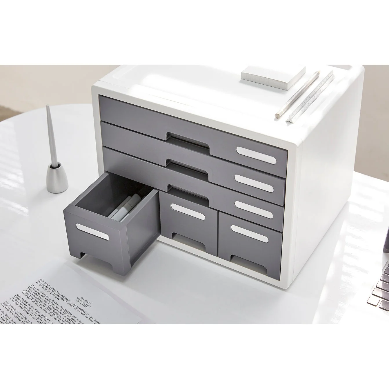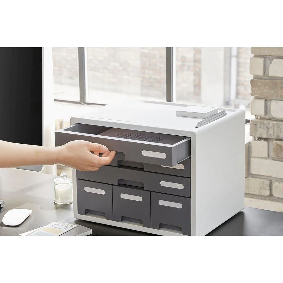 Olvídate del desorden: cada gabinente incluye índices externos que facilitan la identificación de su contenido, haciendo que organizar sea un juego de niños. Además, las cajoneras cuentan con un práctico hueco en la parte superior para moverlas fácilmente según la necesidad del momento.