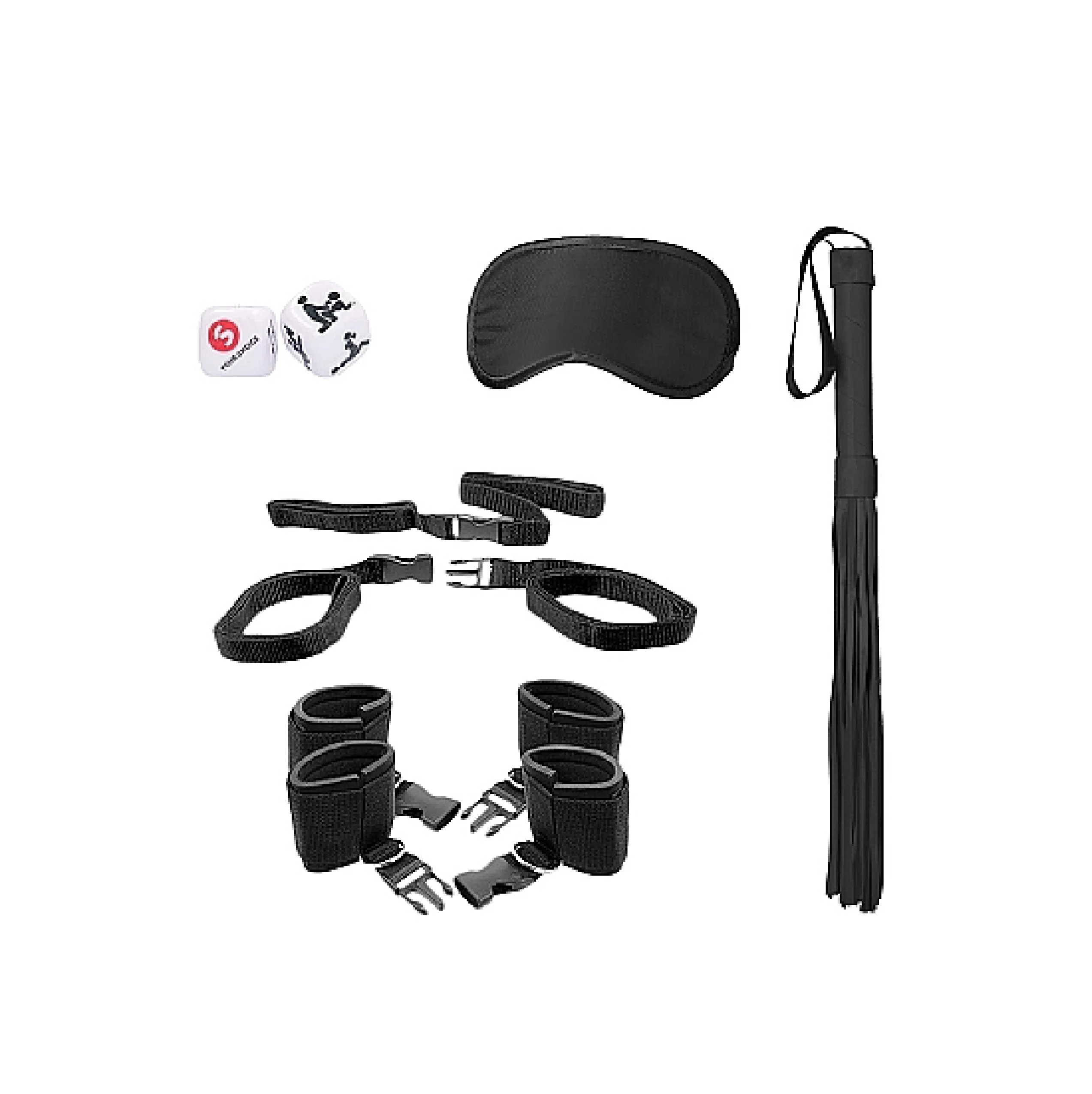 Con 2 muñequeras y 2 tobilleras ajustables, tendrás todo lo necesario para asegurar a tu amante y disfrutar de momentos apasionantes. Además, incluye 4 extensiones de poste de cama para una mayor flexibilidad en tus aventuras. Lo mejor de todo, ¡recibirás un flogger de cuero, una máscara de satén y un dado sexual totalmente GRATIS como regalo especial!