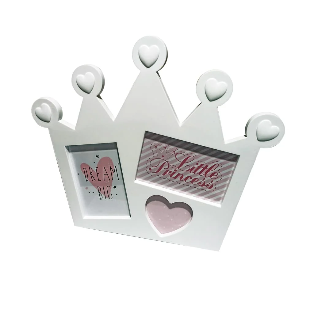Con unas dimensiones de 37 x 32 cm, es el tamaño perfecto para exhibir tus momentos más preciados. Su diseño moderno y encantador en forma de corona añade un toque de estilo que se adapta a cualquier decoración. Hecho de materiales ecológicos y seguros, puedes estar tranquilo sabiendo que estás cuidando del planeta mientras embelleces tu espacio.