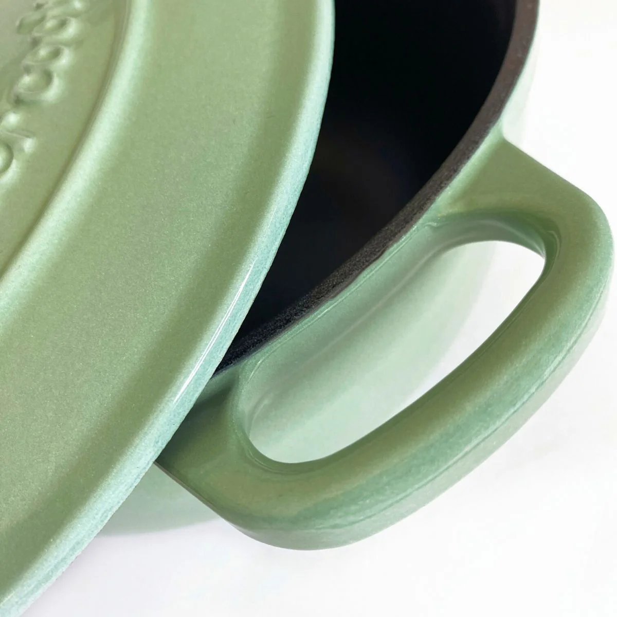 El hierro fundido es conocido por su increíble capacidad para retener el calor, lo que garantiza una cocción uniforme y jugosa. Además, nuestras piezas están diseñadas sin PFOA ni PTFE, lo que las convierte en una opción ecológica y segura para tu hogar.