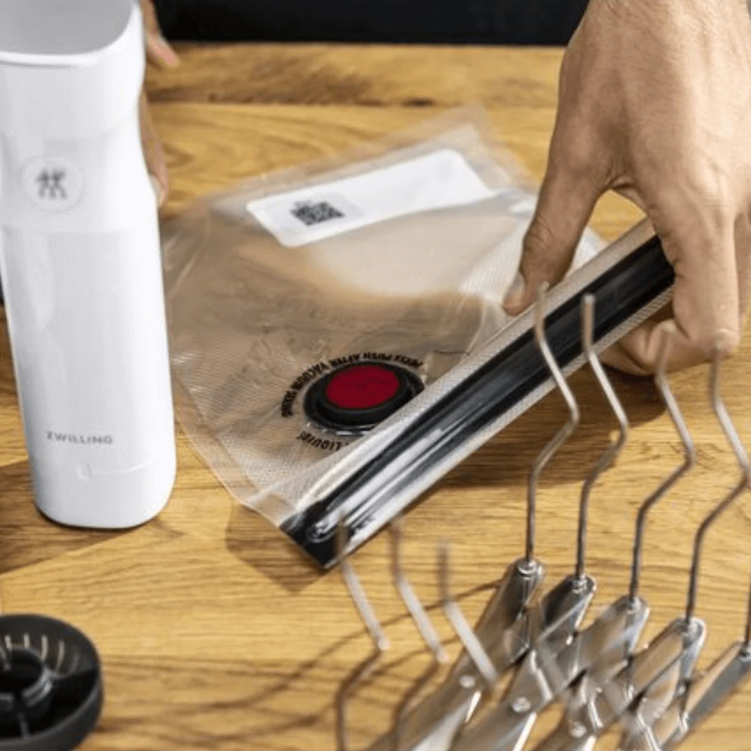 Imagina cocinar un filete al punto perfecto, manteniendo los sabores y nutrientes, y terminarlo con un dorado espectacular en la sartén justo antes de servir. Con la rejilla Sous Vide Zwilling, tendrás el control total sobre tus alimentos, ideal para planificar las comidas y sorprender a tus seres queridos.