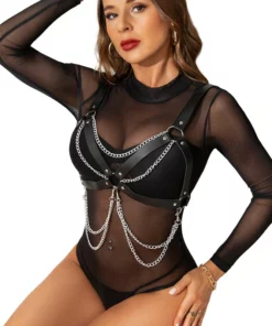Descubre el Arnés Sujetador Sublime, donde la elegancia y la seducción se encuentran en un solo lugar. Diseñado para aquellas mujeres que desean expresar su sensualidad sin límites, este arnés es mucho más que una simple prenda; es una declaración de intenciones. Su color negro clásico realza cualquier outfit, mientras que los detalles en cadenas y anillas añaden un toque audaz y contemporáneo.