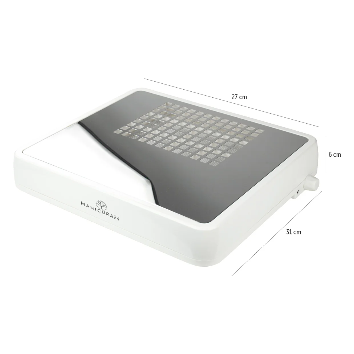 Este aspirador de uñas, diseñado para uso particular, no solo te brinda una estación de trabajo limpia y ordenada, sino que también cuida el planeta. Fabricado con materiales de alta calidad y bajo consumo energético, este aspirador de mesa para manicura es la opción más eco-friendly. Su potente succión atrapa eficazmente el polvo y las partículas, manteniendo tu espacio de trabajo libre de residuos y, lo más importante, evitando que los inhales.