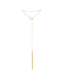 Con un acabado en forma de mini látigo y flecos dorados que brillan con cada movimiento, es perfecto para esos días en los que quieres sentirte especial. Ya sea que lo lleves sobre una blusa elegante, lencería o simplemente sobre tu piel desnuda, ¡este collar es la pieza ideal para cualquier ocasión!
