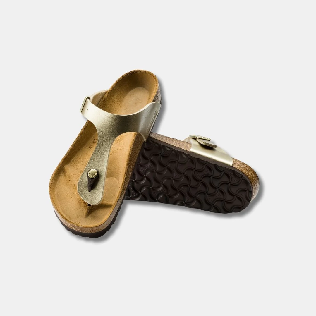El modelo Gizeh de BIRKENSTOCK es mucho más que una simple sandalia; es la combinación perfecta de estilo y comodidad para la mujer moderna. Diseñada para quienes buscan un calzado que no solo complemente su atuendo, sino que también ofrezca un soporte excepcional, esta sandalia destaca por su brillo metálico y su diseño minimalista.
